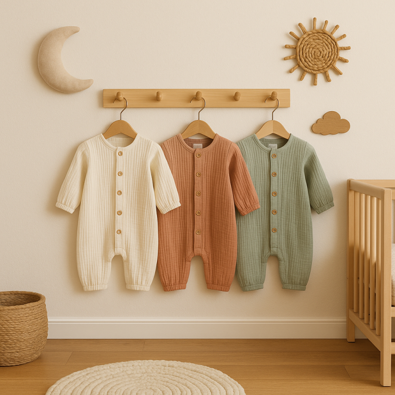 1. Trẻ sơ sinh (0–6 tháng): Ưu tiên mềm mại, dễ mặc: