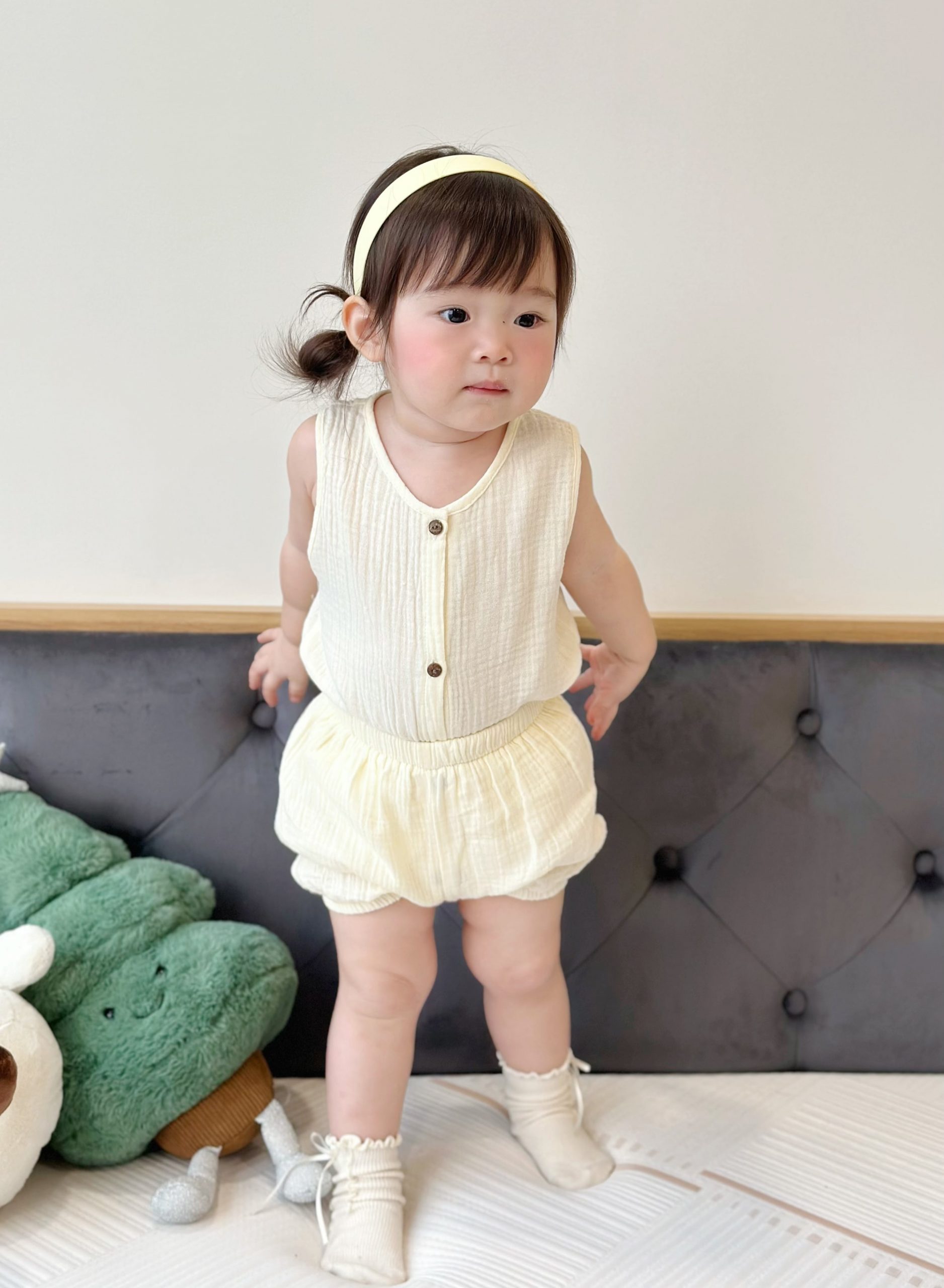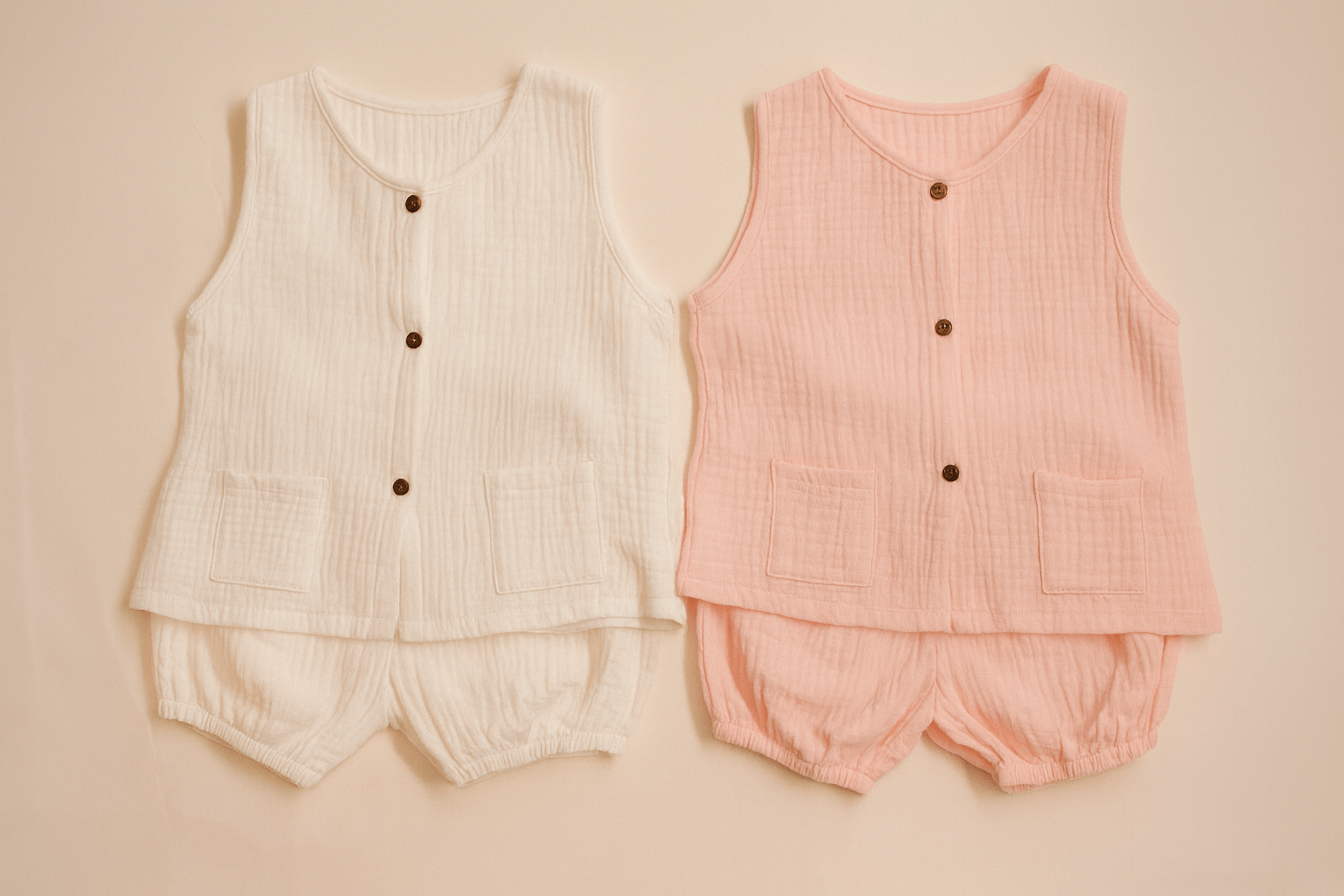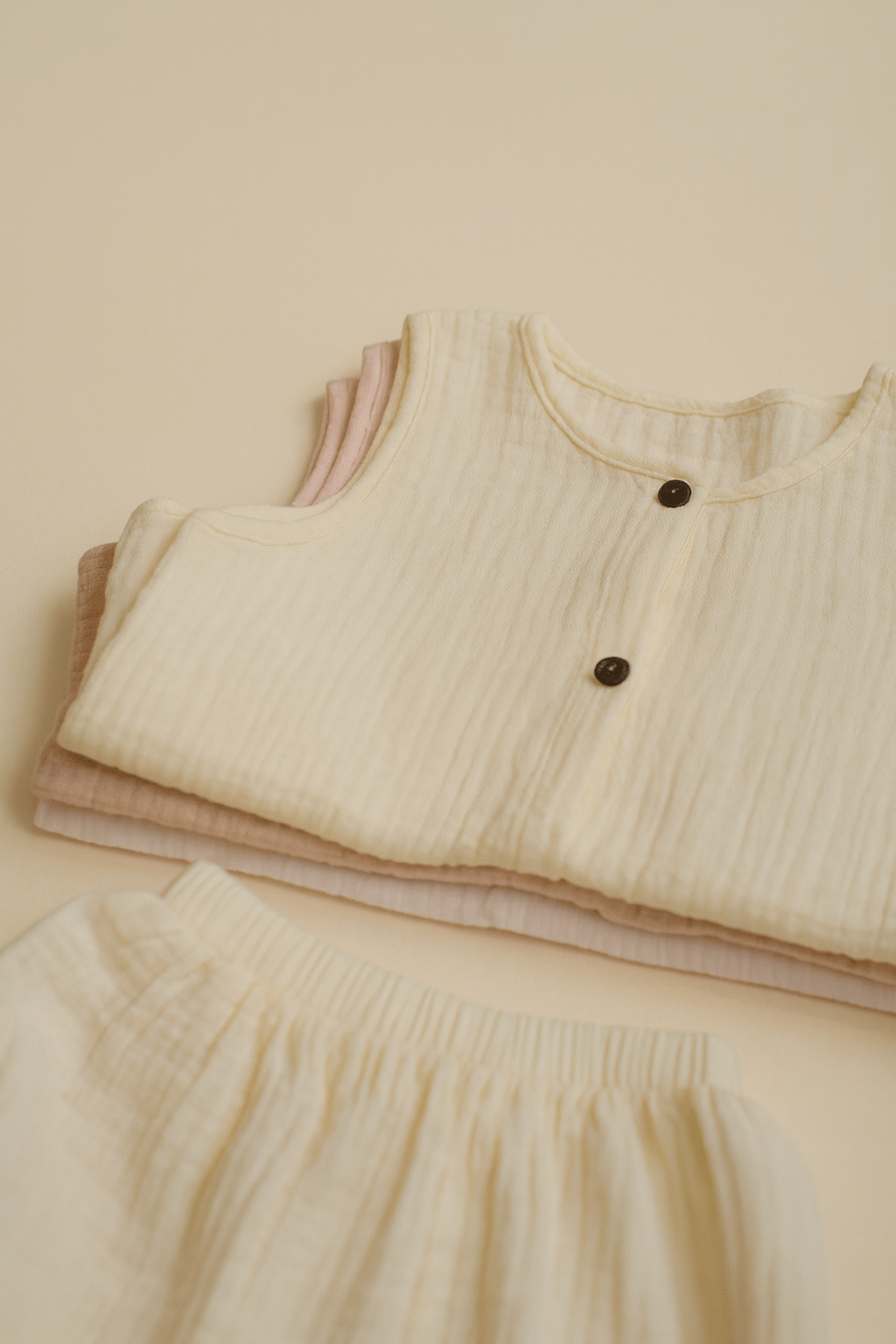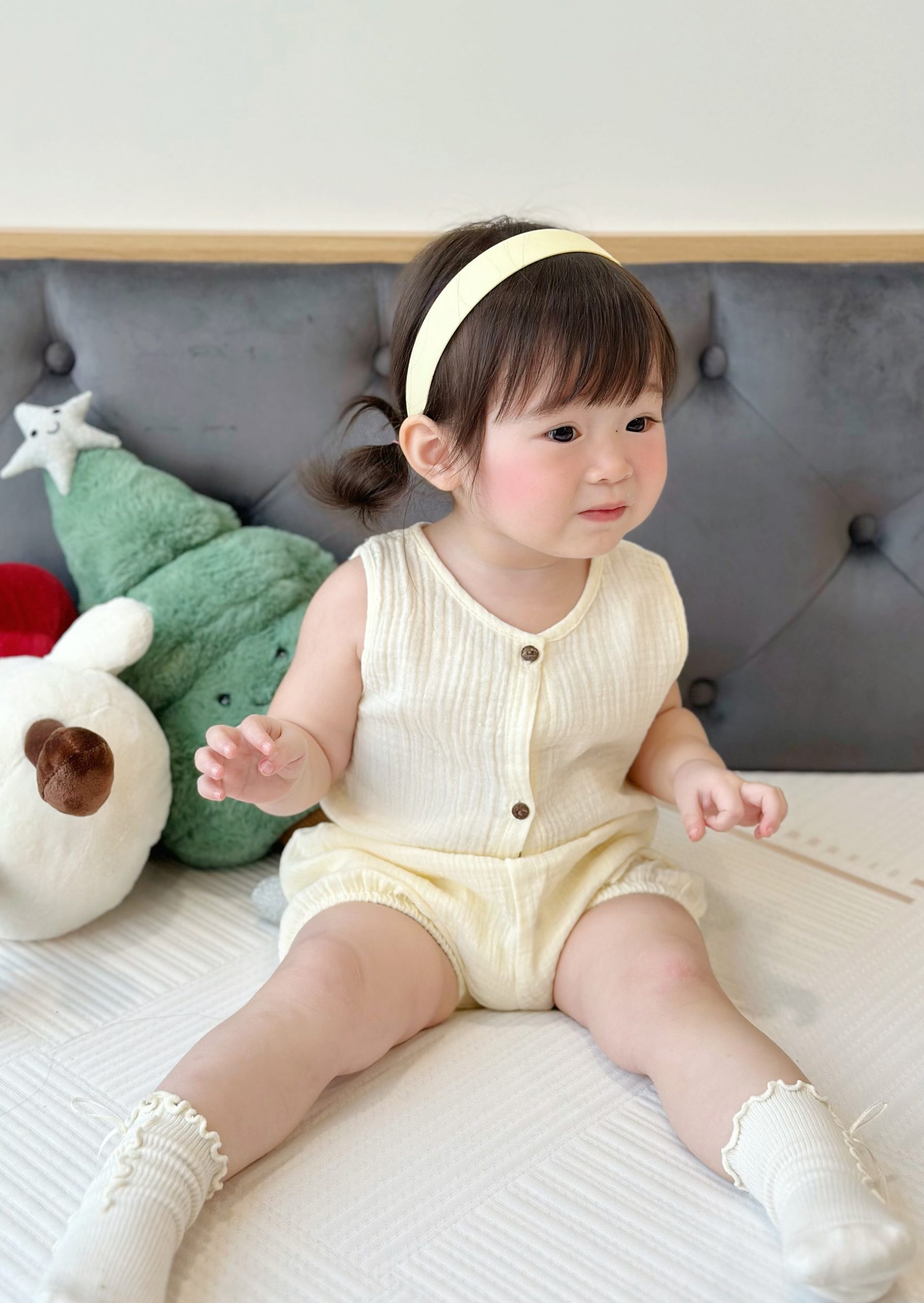 Một sự lựa chọn hoàn hảo cho mùa hè: Airy Set chất liệu muslin cao cấp, mang đến sự thoải mái tuyệt đối và vẻ ngoài thanh lịch cho bé yêu.