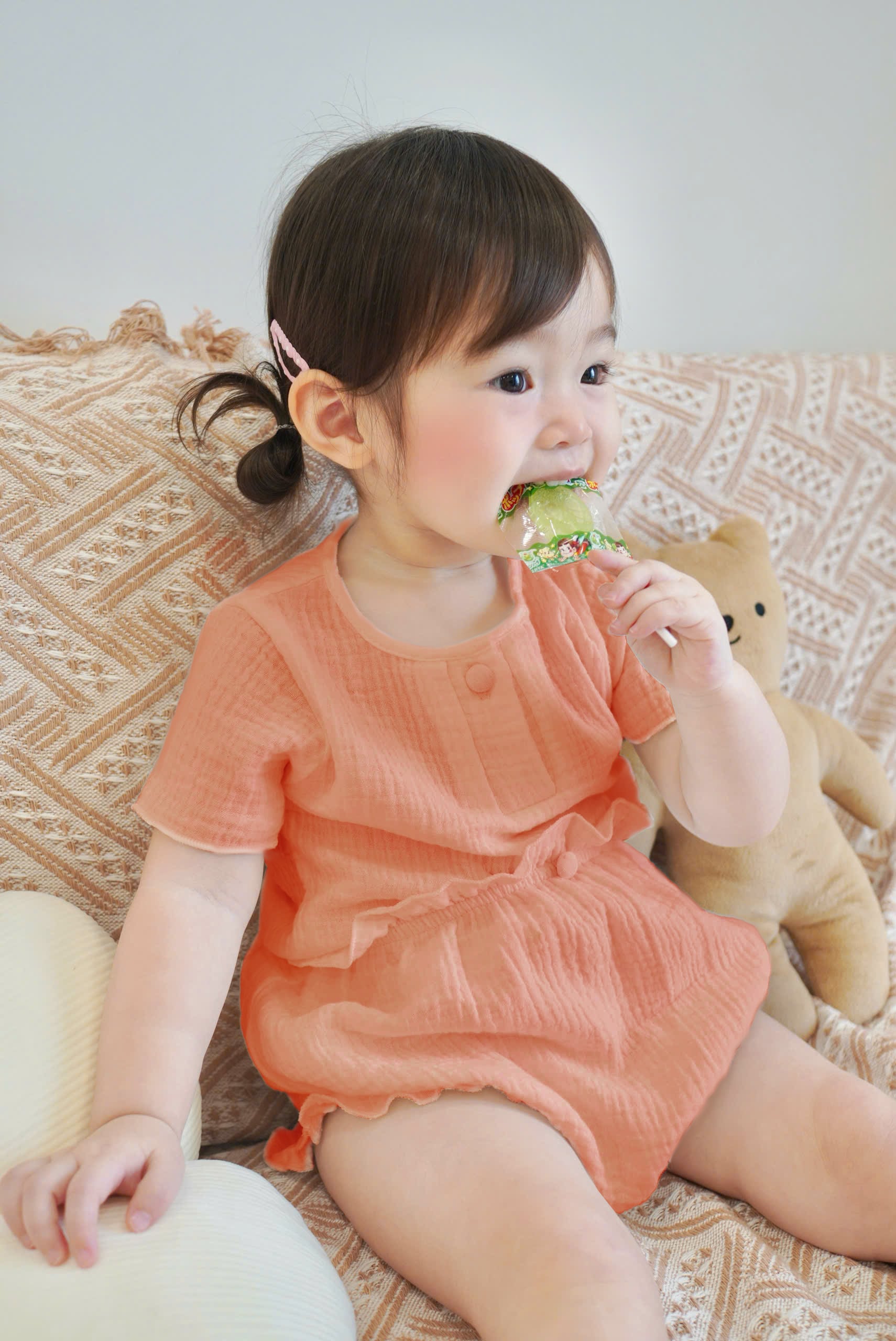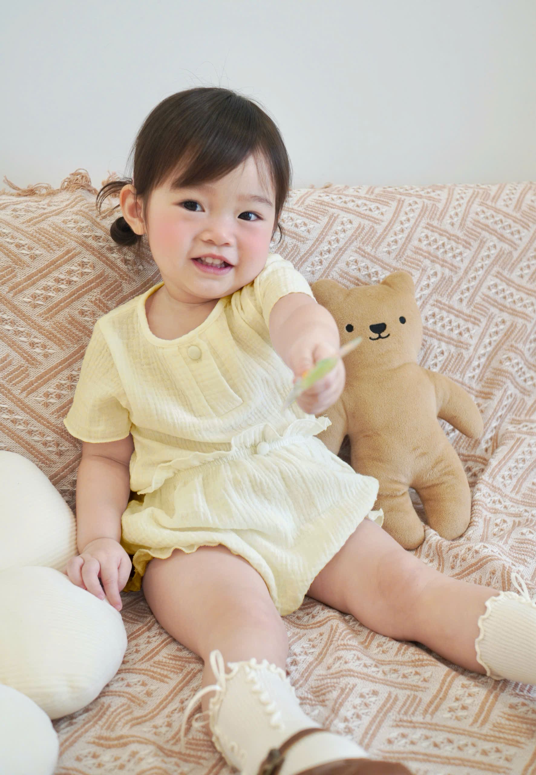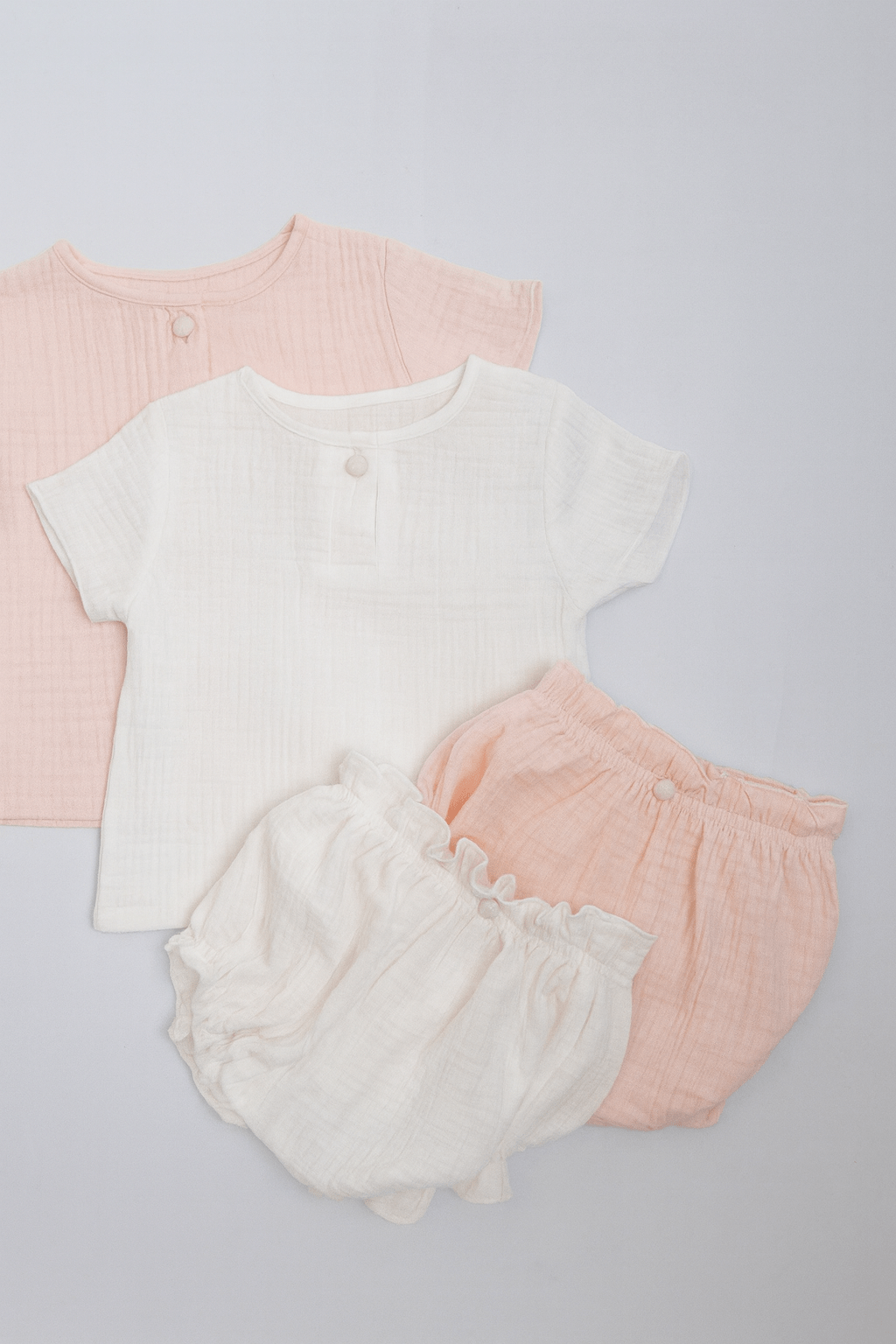 Bộ đồ cotton thô tự nhiên, chạm nhẹ như làn mây – mềm mại, thoáng mát và an toàn tuyệt đối cho làn da non nớt. Thiết kế tinh giản nhưng tinh tế – cổ tròn, tay ngắn, cúc cài nhẹ nhàng; điểm nhấn là phần bo chun mềm mại giúp bé thoải mái vận động suốt ngày dài. Tông màu dịu dàng: Cam đất ấm áp, Vàng kem ngọt ngào, Hồng phấn nhẹ nhàng, Trắng ngà tinh khôi Mỗi bộ đồ là một hơi thở của thiên nhiên, là món quà dành cho bé trong những ngày đầu đời thật yên bình.