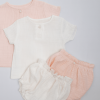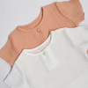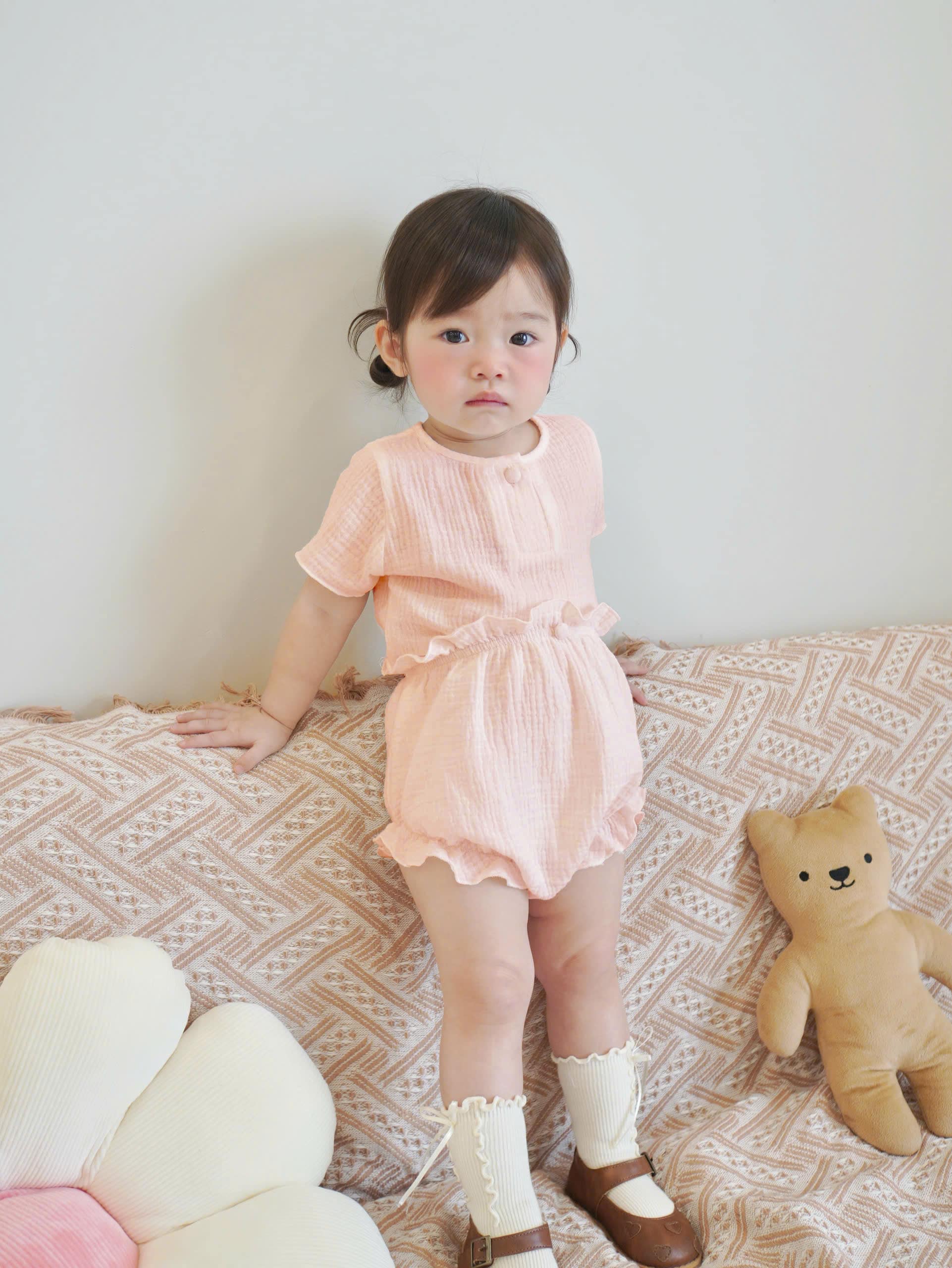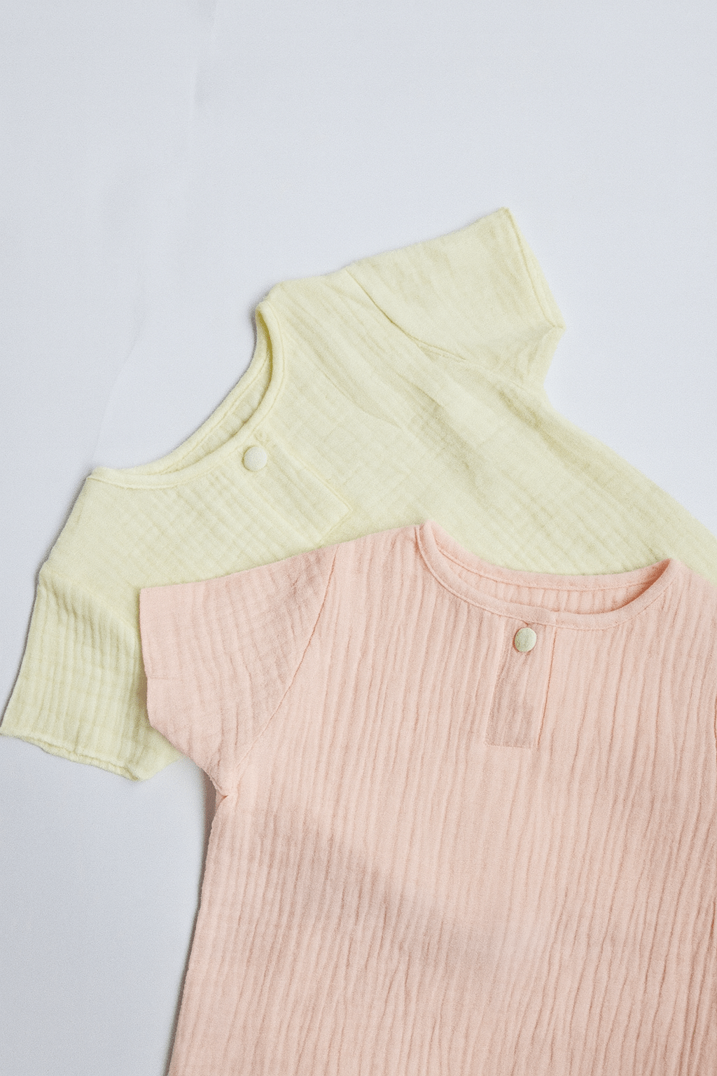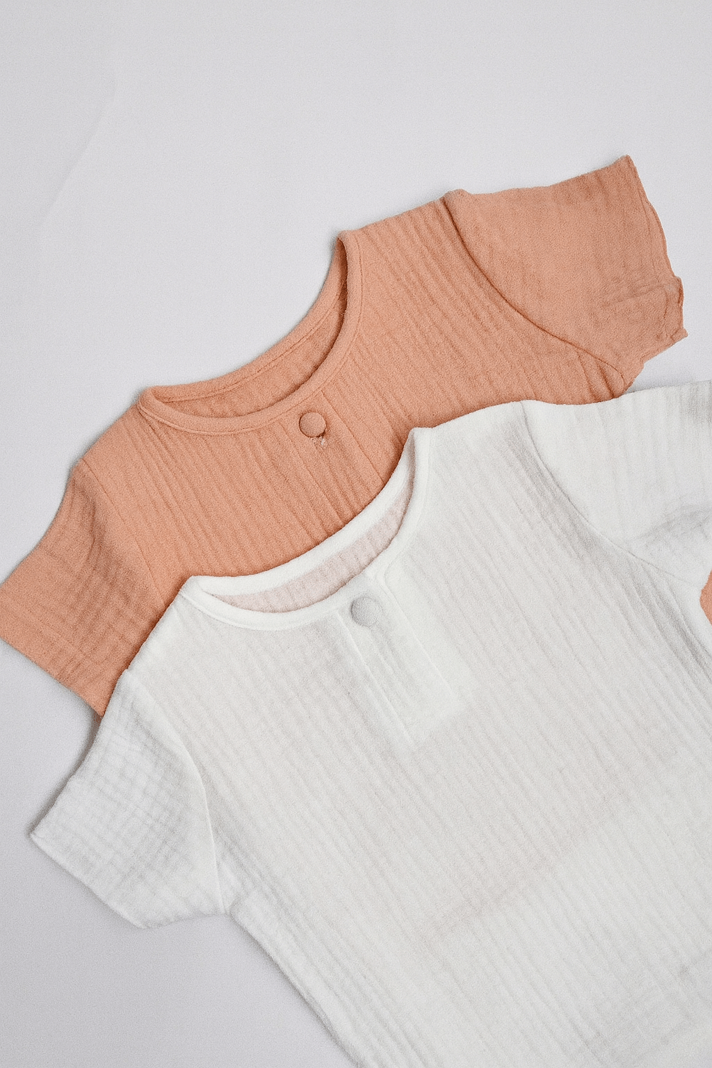 Bộ đồ cotton thô tự nhiên, chạm nhẹ như làn mây – mềm mại, thoáng mát và an toàn tuyệt đối cho làn da non nớt. Thiết kế tinh giản nhưng tinh tế – cổ tròn, tay ngắn, cúc cài nhẹ nhàng; điểm nhấn là phần bo chun mềm mại giúp bé thoải mái vận động suốt ngày dài. Tông màu dịu dàng: Cam đất ấm áp, Vàng kem ngọt ngào, Hồng phấn nhẹ nhàng, Trắng ngà tinh khôi Mỗi bộ đồ là một hơi thở của thiên nhiên, là món quà dành cho bé trong những ngày đầu đời thật yên bình.