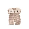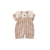 Bộ liền thân thiết kế caro nâu be phong cách Hàn – Nhật, phối cổ vuông bản to in hình gấu xinh xắn, nhìn là yêu ngay 🧸