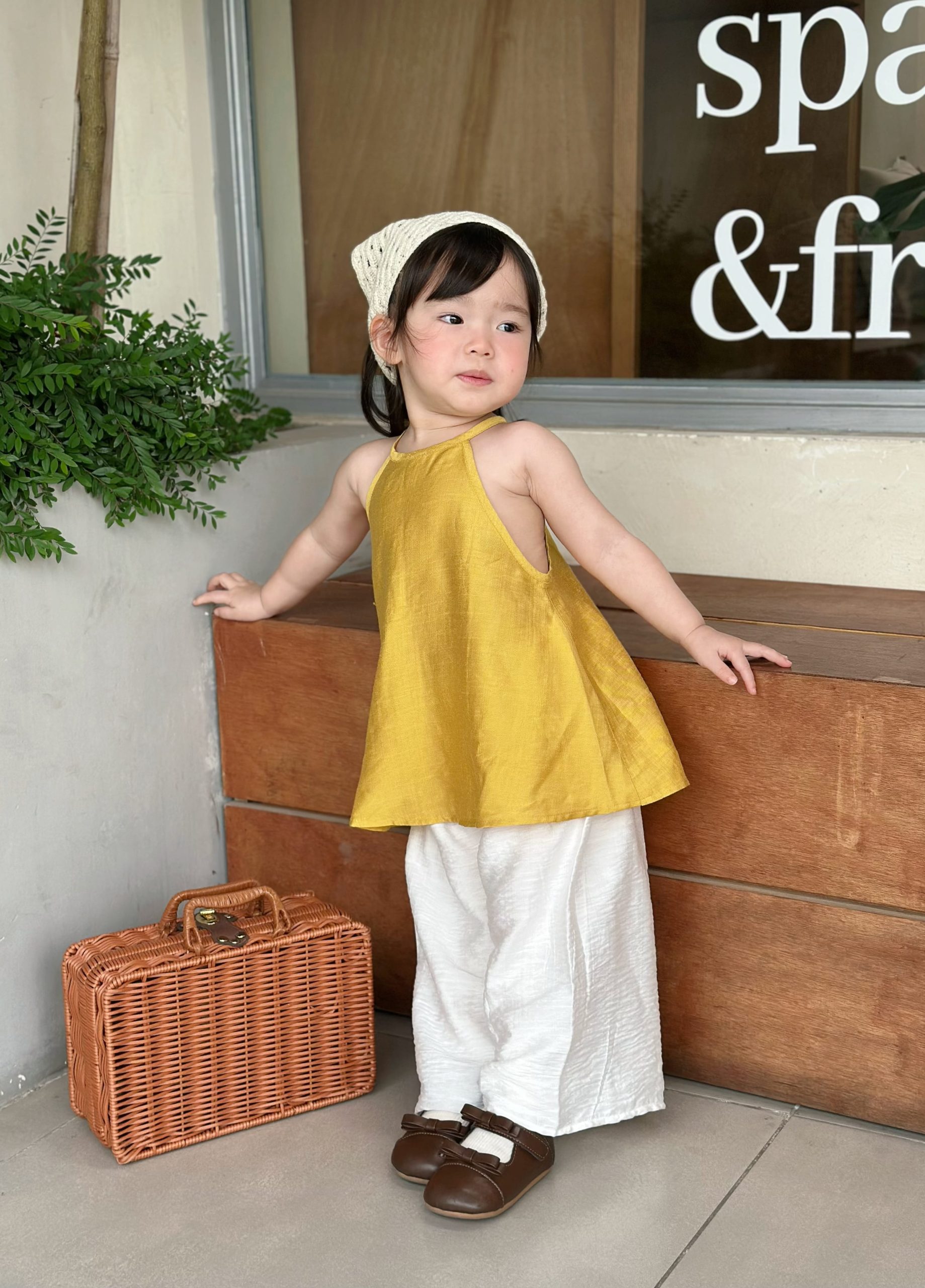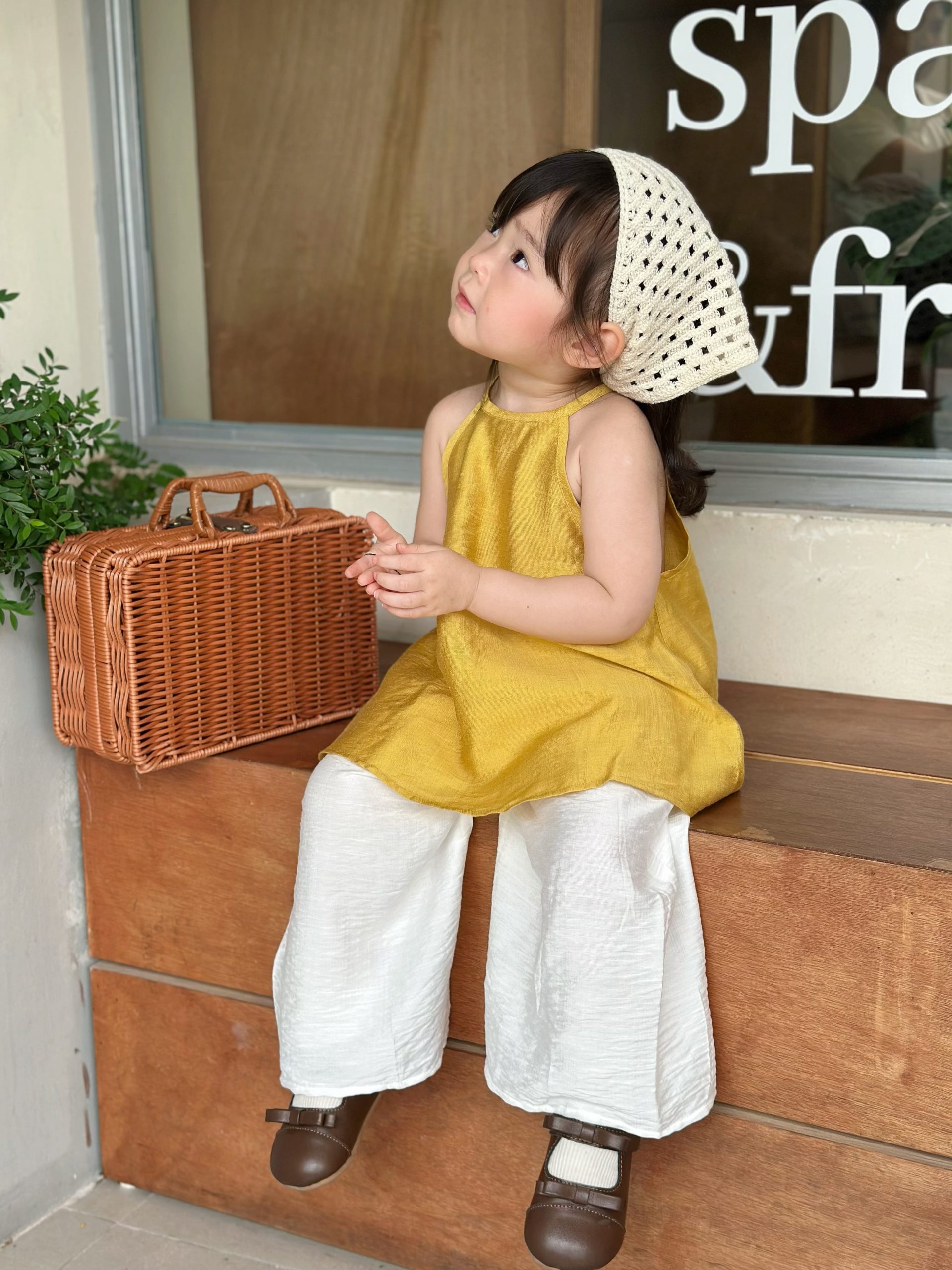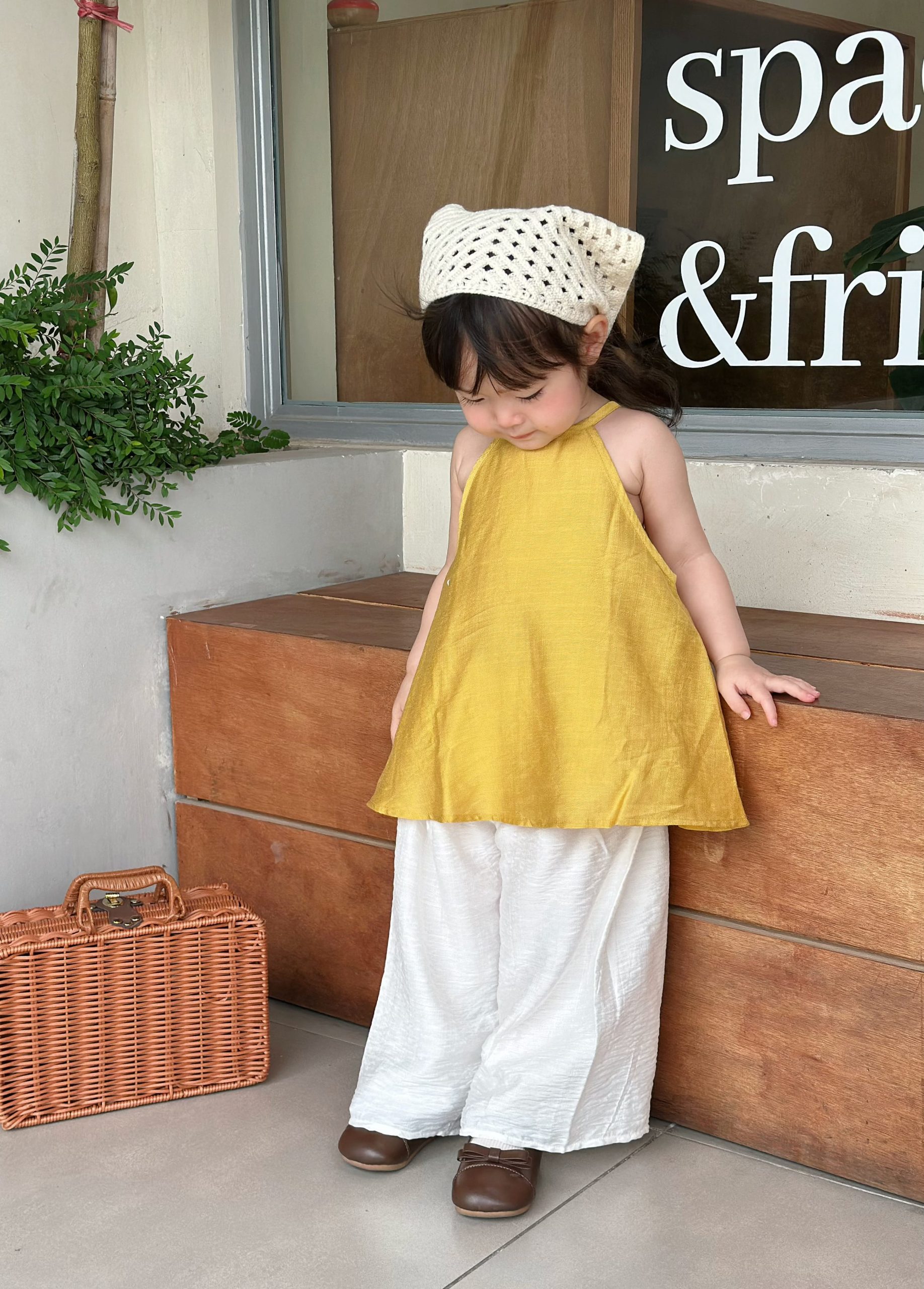Nhẹ như nắng sớm, dịu như gió đồng quê, Yếm Nắng Non mang vẻ đẹp mộc mạc, trong trẻo của tuổi thơ. Thiết kế yếm truyền thống cách điệu kết hợp quần suông thoải mái, vừa đáng yêu vừa dễ vận động cho bé.